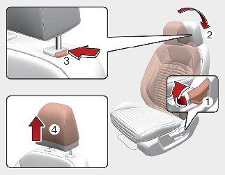 إذا أملت ظهر المقعد نحو الأمام أثناء رفع مسند الرأس ووسادة المقعد، فقد يلامس مسند الرأس حاجب الشمس أو أجزاء أخرى بالسيارة.
