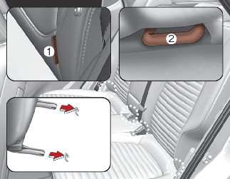 توجد مثبتات ISOFIX بين ظهر المقعد ووسادة المقعد الخاصة بوضعي المقعد الأيمن والأيسر والمقعد الخلفي، وهي مبيّنة بالرموز.
