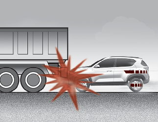 وفي الغالب، قبيل حدوث التصادم، سيقوم السائق بعمل فرملة شديدة. ستؤدي هذه الفرملة الشديدة إلى خفض الجزء الأمامي من السيارة مما قد يؤدي إلى "دخول مقدمة السيارة" تحت مركبة أخرى ذات خُلوص أرضي أعلى (أعلى ارتفاعًا عن الأرض). قد لا تنتفخ الوسائد الهوائية في حالة "النزول تحت مركبة" لأنه قد يتم تقليل قوى التباطؤ التي تستكشفها المستشعرات بشكل كبير بسبب تصادمات "النزول تحت مركبة".