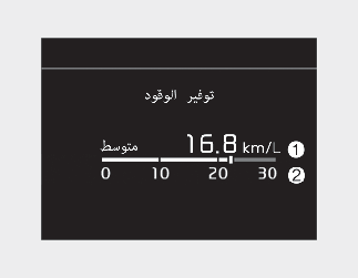 يتم احتساب متوسط توفير الوقود من خلال إجمالي مسافة القيادة واستهلاك الوقود منذ آخرإعادة ضبط لمتوسط توفير الوقود.