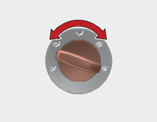 لتغيير درجة حرارة الهواء في مقصورة الركاب، قد بتدوير المقبض في اتجاه اليمين للحصول على هواء دافئ وساخن أو في اتجاه اليسار للحصول على هواء مُبرد.