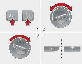 إزالة الضباب داخل النوافذ الأمامية باستخدام نظام التحكم اليدوي في درجة الحرارة
