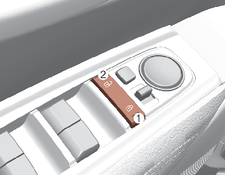 إذا كان المفتاح داخل مفتاح الإشعال (أو إذا كان المفتاح الذكي في السيارة) وفُتحَ أي باب، فلن تُغلق الأبواب على الرغم من الضغط على الجزء الأيسر (1) من مفتاح قفل الباب المركزي من جانب السائق.