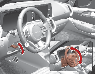 تتيح إمكانية إمالة عجلة القيادة ضبط عجلة القيادة قبل قيادة السيارة. ويمكنك أيضًا رفعها لإعطاء القدمين مجالاً أوسع عند الدخول في السيارة والخروج منها.