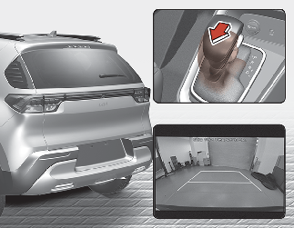ينشط مراقب الرؤية الخلفية مع دليل الركن عند تشغيل المحرك ونقل ذراع نقل الحركة إلى الوضع R (رجوع).