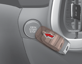 عندما تضغط على زر ENGINE START/STOP (تشغيل/إيقاف المحرك) مباشرة باستخدام المفتاح الذكي، ينبغي أن يلامس المفتاح الذكي الزر في زاوية قائمة.