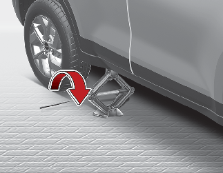 أدخل مقبض الرافعة في الرافعة ثم أدرها في اتجاه عقارب الساعة، لرفع السيارة حتى يصبح الإطار غير ملامس للأرض. يبلغ هذا الارتفاع تقريبًا 30 مم (1.2 بوصة). قبل إزالة عزقات العجلات، تأكد من ثبات السيارة وعدم إمكانية تحركها أو انزلاقها.
