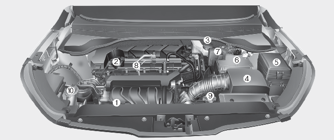* قد تختلف غرفة المحرك الفعلية في السيارة عن الرسم التوضيحي.