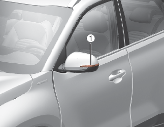 إذا لم يعمل مصباح المكرر الجانبي LED (1)، نوصي بفحص النظام لدى ورشة متخصصة. تُوصي Kia بزيارة أحد شركاء خدمة/وكلاء Kia المعتمدين.