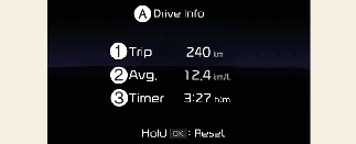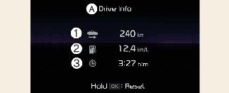 L'écran informations de conduite se réinitialise lorsque la porte du conducteur est ouverte après avoir éteint le véhicule, ou lorsque le véhicule est démarré après 3 minutes.