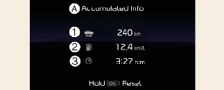Pour réinitialiser manuellement les informations, maintenez le bouton OK sur le volant enfoncé en regardant lesInformations cumulées.