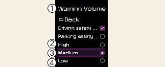 Si vous changez le volume de l'avertissement, celui des autres systèmes d'assistance à la conduite peut changer.