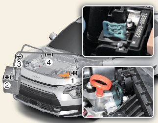 S'il est connecté à l'autre véhicule, démarrez d'abord le véhicule avec la batterie d'appoint et laissez-le tourner à 2000 tr/min pendant plusieurs minutes.