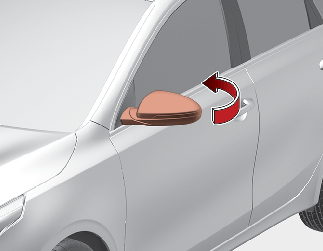 A tükör be- vagy kihajlik, ha az ajtót a külső ajtónyitó-fogantyú gombjával zárják be vagy nyitják ki. (felszereltségtől függően)