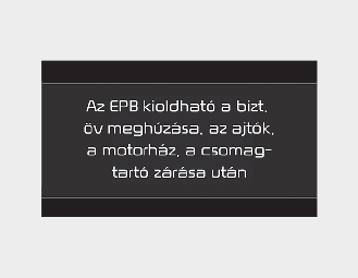 Ha úgy próbál meg a gázpedál lenyomásával elindulni, hogy az EPB rendszer aktiválva van, és az nem oldódik ki automatikusan, akkor egyszeri figyelmeztető hangjelzést hallható, és üzenet jelenik meg.