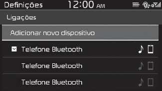 • Assim que o seu telemóvel for conectado ao sistema, o som da chamada pode ser emitido a partir das colunas do veículo mesmo depois de sair do veículo se o telefone estiver dentro do alcance de ligação. Para terminar a ligação, desligue o dispositivo do sistema ou desative o Bluetooth no dispositivo.