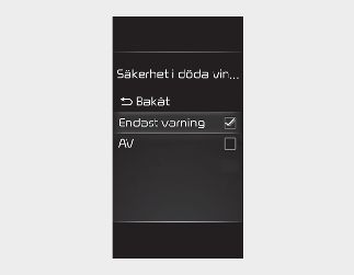 Om du väljer "Av" stängs Kollisionsvarning för döda-vinkeln av.