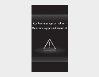 Varningsmeddelandet “Check Driver Attention Warning (DAW) system” (kontrollera systemet för uppmärksamhetsvarning till föraren) kommer att visas i klustret när DAW inte fungerar normalt. Om detta sker rekommenderar vi att du kontaktar en godkänd Kia-återförsäljare/servicepartner för kontroll av bilen.
