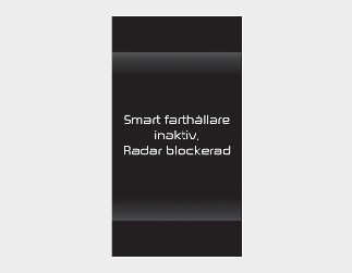 Om detta inträffar kommer varningsmeddelandet “Smartfarthållaren inaktiverad. Varningsmeddelandet “Radar skymd” (eller “SCC inaktiverad. Radar blockerad”) visas och varningslampor tänds på instrumentpanelen.