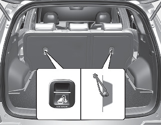Connect the top-tether to the top-tether anchorage, then tighten the top-tether according to the instructions of your Child Restraint System's manufacturer to firmly attach the Child Restraint System to the seat.