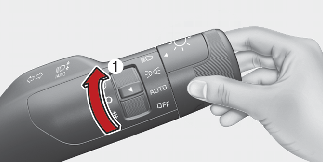 The fog lights will turn on when the fog light switch (1) is turned to the on position after the headlight is turned on.