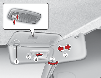 To use the vanity mirror, pull down the visor and slide the mirror cover (4).