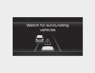 In the following situation, the 'Watch for surrounding vehicles' warning message will appear on the cluster, and an audible warning will sound to warn the driver of road conditions ahead.