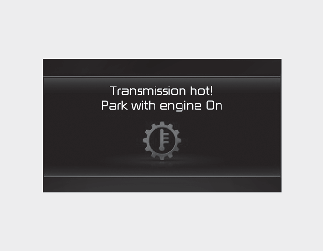 When the transmission is overheated, the safe protection mode engages and the "Transmission Hot! Park with engine on" warning message will appear on the LCD display with a chime.