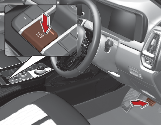 For your safety, press the brake pedal and release the parking brake manually with the EPB switch when you drive downhill or when backing up the vehicle.