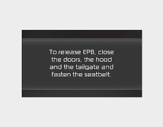 If you try to drive off whilst engaging the accelerator pedal with the EPB applied, but the EPB doesn't release automatically, a warning will sound and a message will appear.