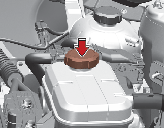 Check the coolant level. The coolant level should be filled between MAX and MIN marks on the side of the coolant reservoir when the engine room is cool.