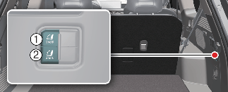 Press the 2nd row seat folding/unfolding switch(1 or 2) located on the right side of the luggage compartment.