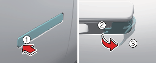 If the door is closed with strong force or the outside door handle is pulled at high speed, the safety device inside the outside door handle is activated and the door may not be opened even if the door handle is pulled.