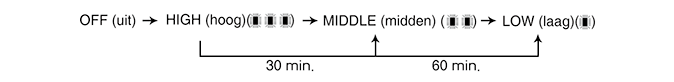Telkens als u op de schakelaar drukt, verandert de temperatuurinstelling voor de stoel als volgt: