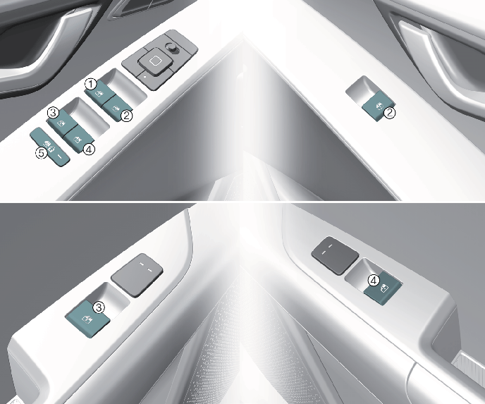 뒷좌석 (우측) 유리창 개폐 스위치