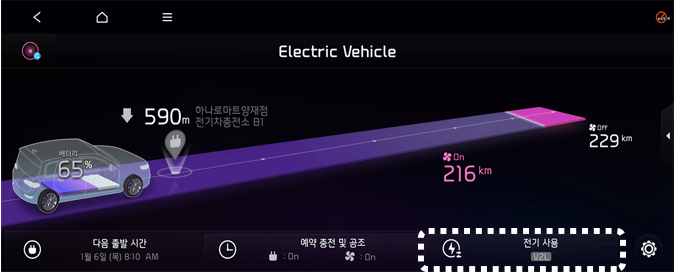 배터리 사용 설정 한도에 도달하여 V2L 기능을 종료합니다