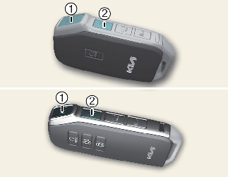 시동이 꺼진 상태에서 도어 잠금 버튼(1) 또는 도어 잠금 해제 버튼(2)을 약 3초 이상 길게 누를 경우