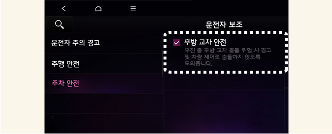 차량 사양에 따라 설정 메뉴가 없을 수 있습니다.