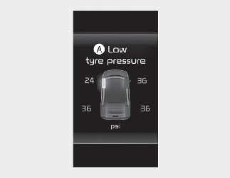 عند إضاءة مؤشرات تحذير نظام مراقبة ضغط الإطارات وعرض رسالة التحذير على شاشة LCD على مجموعة العدادات، يكون ضغط إطار واحد أو أكثر من إطارات سيارتك منخفضًا بدرجة كبيرة. يضيء مصباح مؤشر وضع ضغط الإطارات المنخفض إلى الإطار ذي الضغط المنخفض بدرجة كبيرة عن طريق إضاءة ضوء الوضع المناظر.
