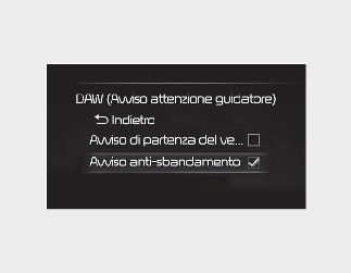Se si seleziona 'Avviso anti-sbandamento', la funzione informerà il conducente del livello di attenzione e consiglierà di fare una pausa quando il livello scende sotto una certa soglia.
