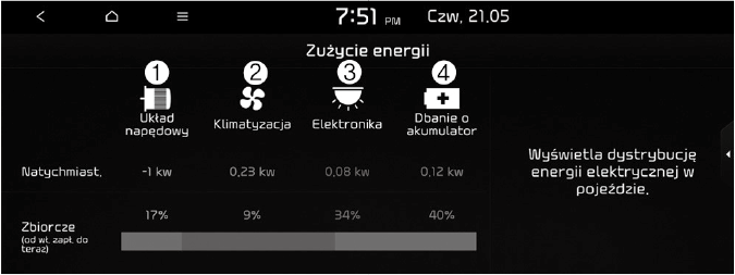Można sprawdzić aktualny pobór energii każdego układu pojazdu.