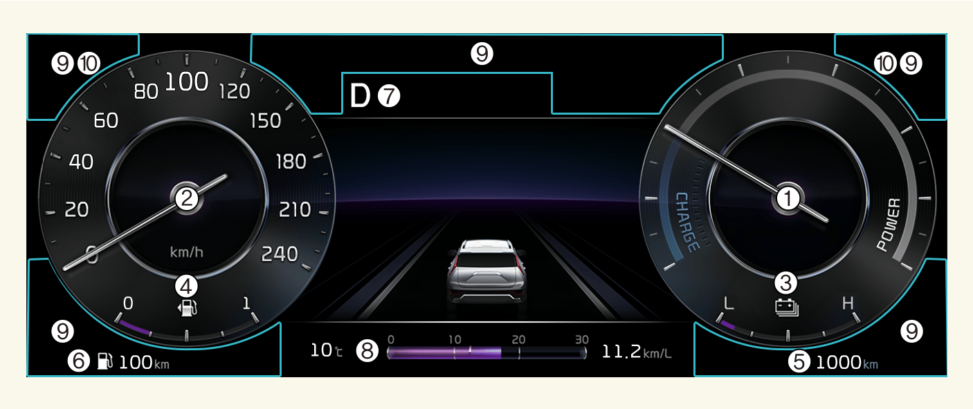 EV+ režiim Sõiduki juhtimiseks kasutatakse ainult kõrgepinge (hübriid) akut. (Välja arvatud täielikult ilma gaasipedaali vajutamata)