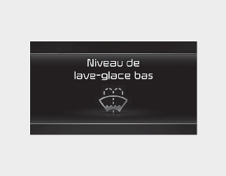 Ce message d’avertissement s’affiche si le niveau du réservoir de liquide lave-glace est presque vide.