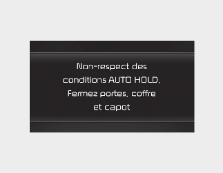 Lorsque vous appuyez sur le contacteur [AUTO HOLD] (maintien automatique), si la porte du conducteur, le hayon et le capot du moteur ne sont pas fermés, un signal sonore retentira et un message apparaîtra sur l’écran LCD.