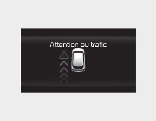 Lorsqu'un véhicule arrivant par l'arrière est détecté au moment où une portière s’ouvre, le message d'avertissement ‘Watch for traffic (Attention au trafic)’ apparaîtra dans le combiné d’instruments et un signal sonore retentira.