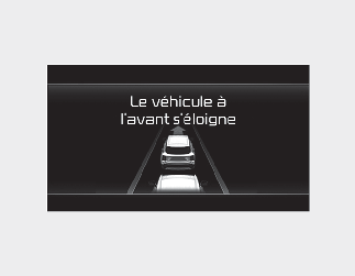 Lorsque le véhicule de tête quitte l’arrêt, l'alerte de démarrage du véhicule de tête avertit le conducteur en affichant le message ‘Leading vehicle is driving away’ (Le véhicule de tête démarre) (ou ‘Leading vehicle is driving on’ (Le véhicule de tête continue à démarrer)) dans le combiné d’instruments et un signal sonore retentit.