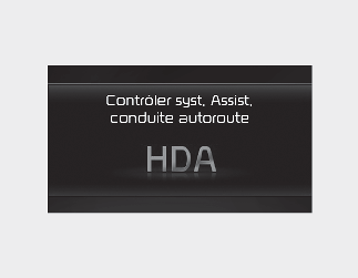 Lorsque l'aide à la conduite sur autoroute ne fonctionne pas correctement, le message d'avertissement apparaîtra et le témoin