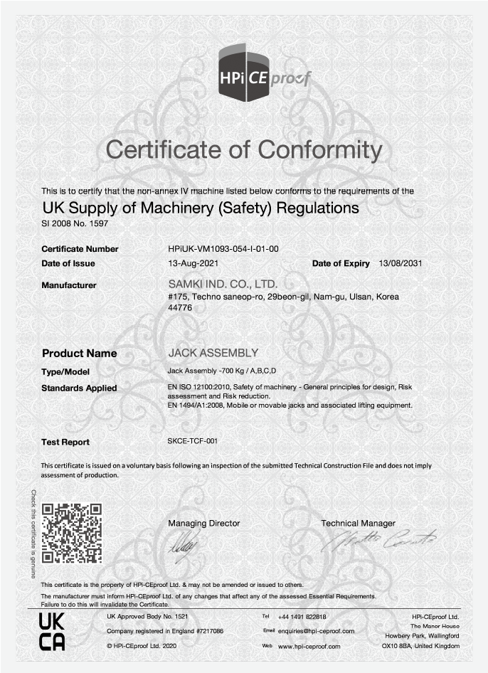 Déclaration de conformité CE pour le cric