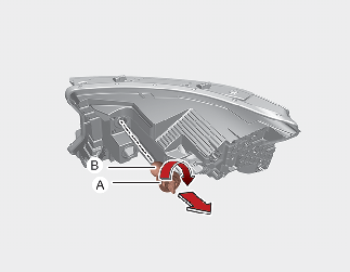 Retirez l’ampoule (B) de la douille (A) en appuyant dessus et en la faisant tourner dans le sens antihoraire jusqu’à ce que