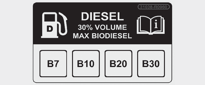 L'étiquette de carburant est collée au volet de remplissage de carburant.
